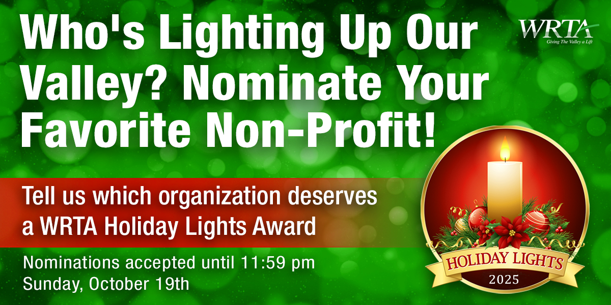 NOMINATE A LOCAL NON-PROFIT Do you know of a local non-profit organization that really helps Valley residents? The WRTA Holiday Lights Award is their chance to shine. Cast your nomination today using the form below! Hurry, the Deadline is Sunday, October 19, 2025. ABOUT THE AWARD The WRTA Holiday Lights …