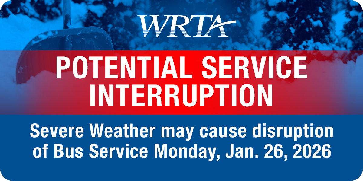WRTA will continue to monitor road conditions and prioritize the safety of passengers, operators, and the community. Service adjustments may occur based on weather severity and roadway conditions.